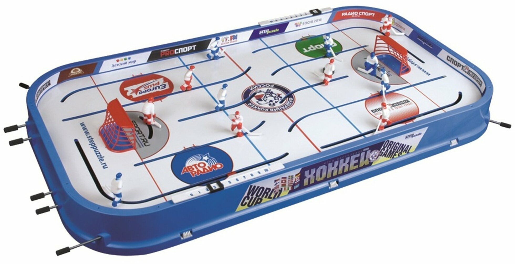 | Комплектация | хоккейное поле (в сборе): 1 шт., комплект объемных фигурок хоккеистов и вратарей: 12 шт., планка счёта: 2шт., ворота: 2шт., шайба: 2 шт., инструкция по применению: 1 шт. |