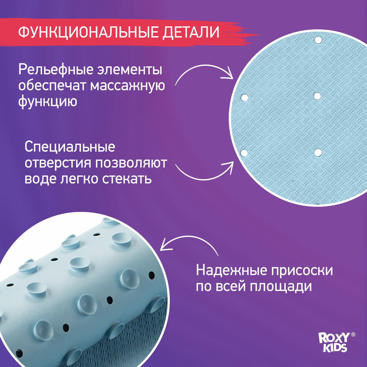 Коврик резиновый антискользящий для ванны Roxy-kids ROXY KIDS, 34,5х76 см, голубой интересное: