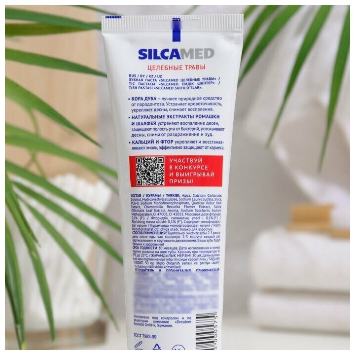 Зубная паста SILCAMED Целебные травы, 130 мл, в коробке