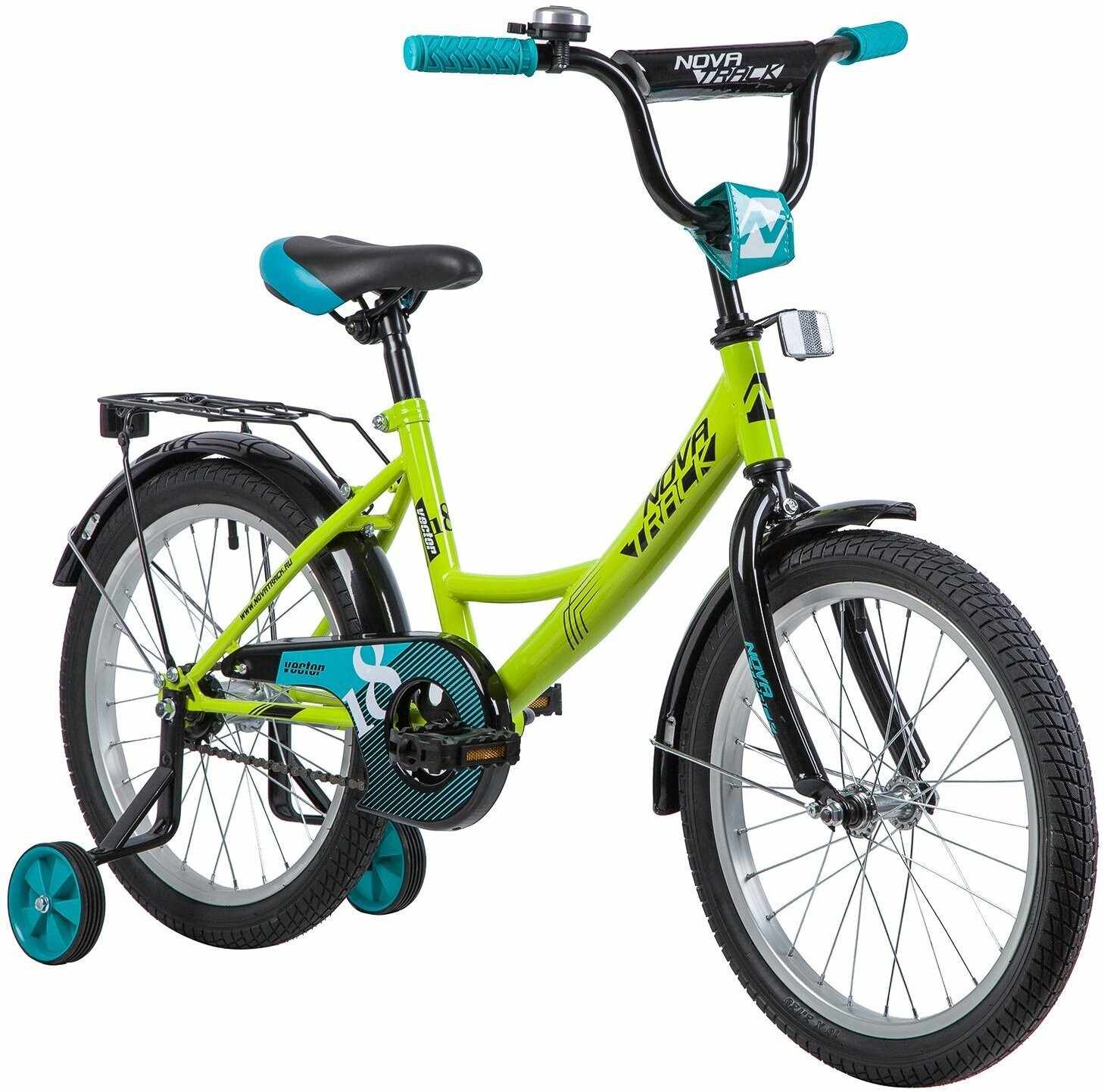 Велосипед детский NOVATRACK 18"183VECTOR.GN9 лаймовый, защита А-тип, тормоз нож., крылья и багажник