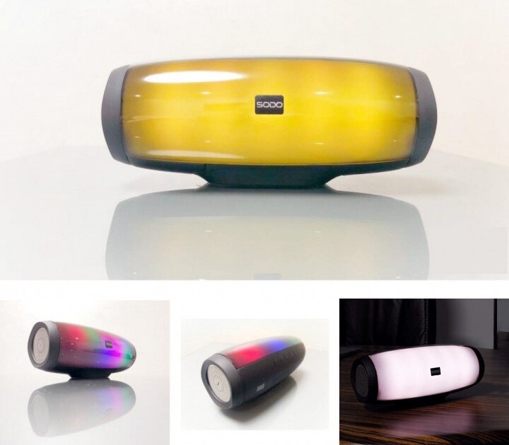 | Отзыв: | Колонка постоянно подключена к сети и используется для телефона и для звука с компьютера. Покупалась на замену безымянной китайской моно-колонке с подсветкой. Т.к. в требованиях была RGB-подсветка, на момент покупки выбор был между этой колонкой и JBL Pulse 4. Но у второй моно-звук и нет линейного входа, поэтому выбрали Sodo. Если бы в продаже была JBL Pulse 3, взял бы её не глядя :) По сравнению с безымянной китайской тут, кажется, настройка громкости всё-таки влияет на «озвучку», но зато китайская была доступна в Bluetooth постоянно. |