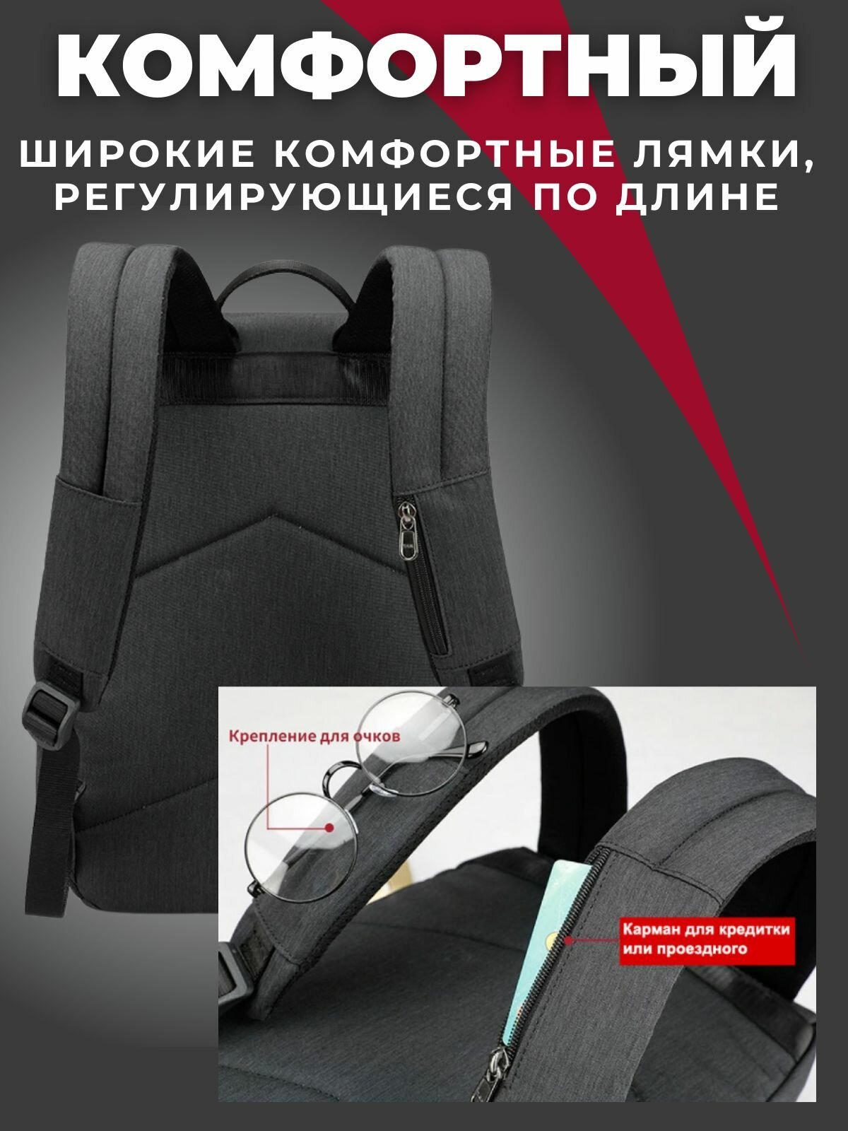 Рюкзак Tigernu T-B3513 для ноутбука, USB-порт для Power Bank, тёмно-серый интересное: