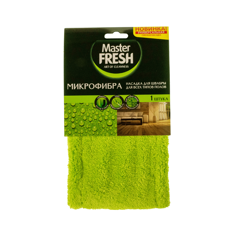 СохранитьНасадка Master FRESH для швабры-флеттер из микрофибры для всех типов полов зеленый интересное: