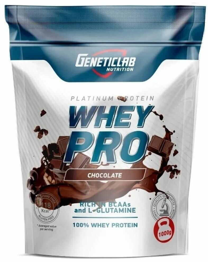 Протеин GeneticLab Nutrition WHEY PRO, шоколад, 1 кг, сывороточный