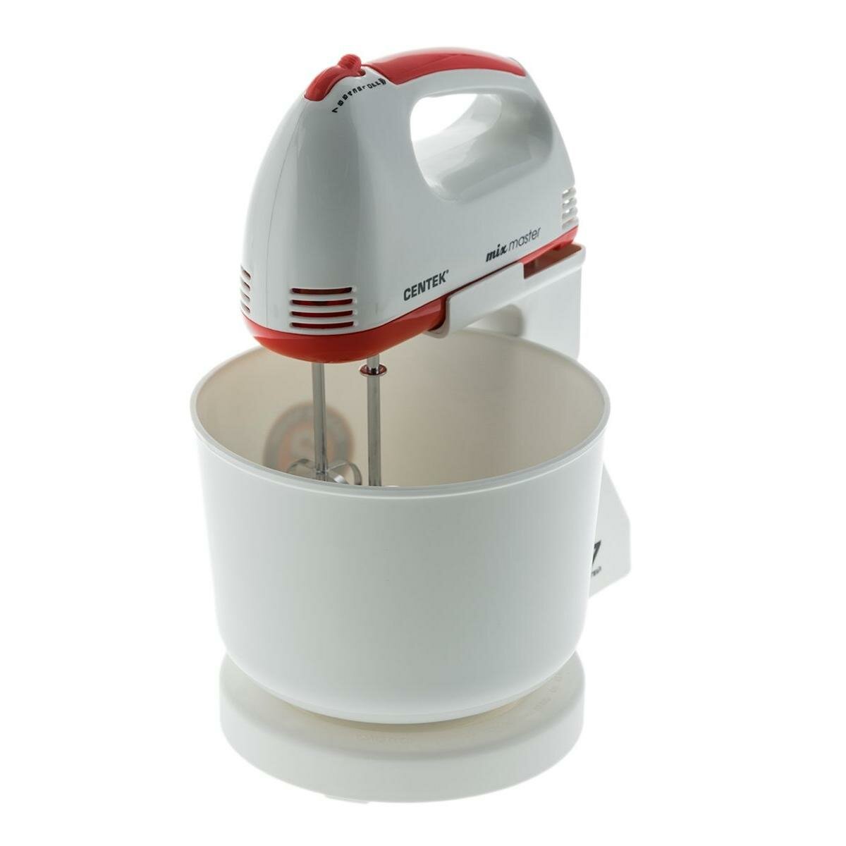 Миксер с чашей Centek CT-1113 (белый/красный) 170Вт, 6 скоростей+турбо, взбивание/замешивание