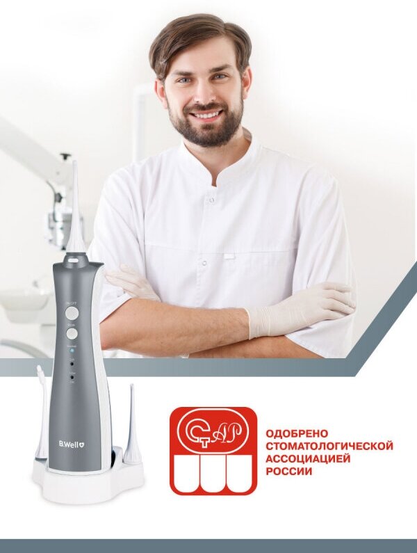 Ирригатор B.WELL WI-912, портативный 5 насадок. Бесконтактная зарядка