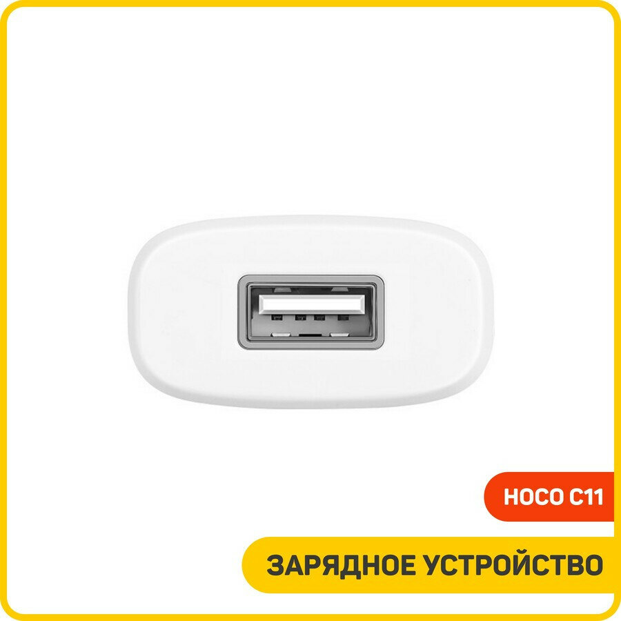 Зарядное устройство Hoco C11 Single USB, Lightning cable, 1.0A, белый