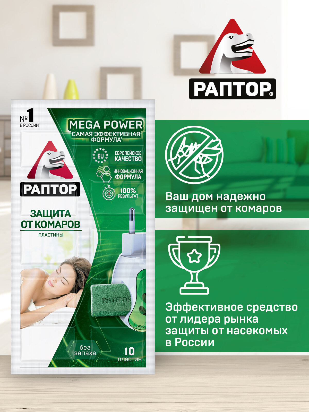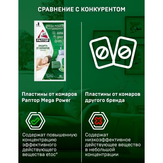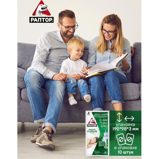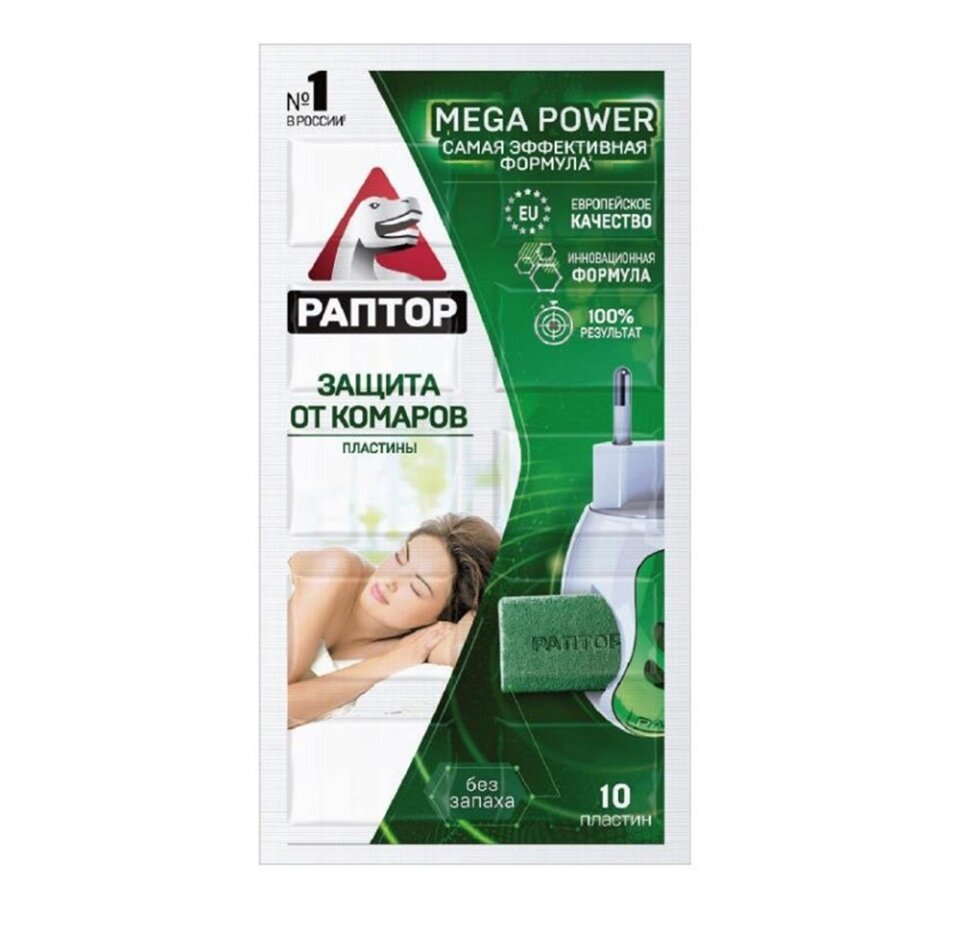 Раптор Пластины от комаров MEGA POWER, 10 шт., без запаха
