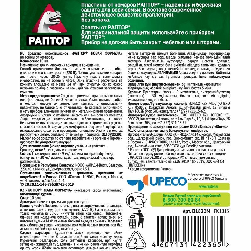 Пластины от комаров Раптор 10 шт, без запаха интересное: