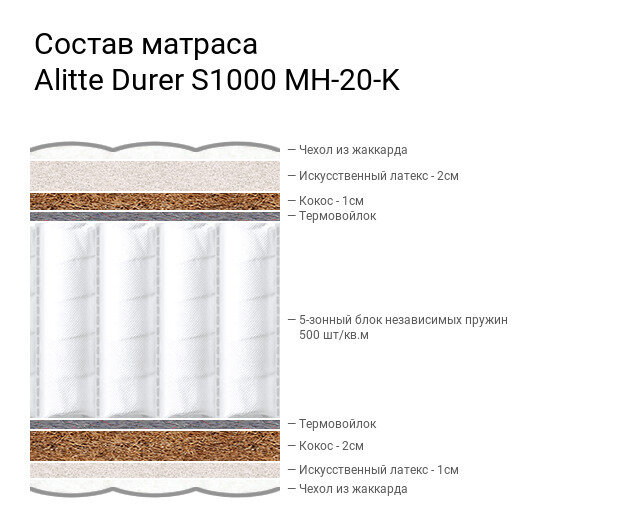 Матрас Alitte Durer S1000 MH-20-K, Размер 150х185 см