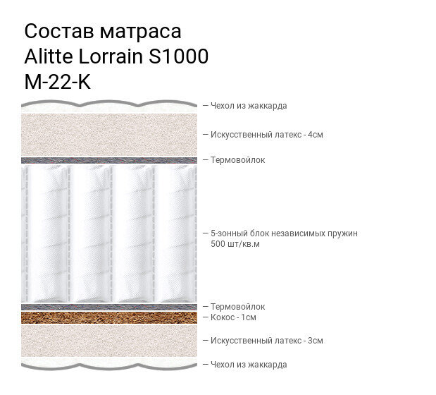 Матрас Alitte Lorrain S1000 M-22-K 110x210