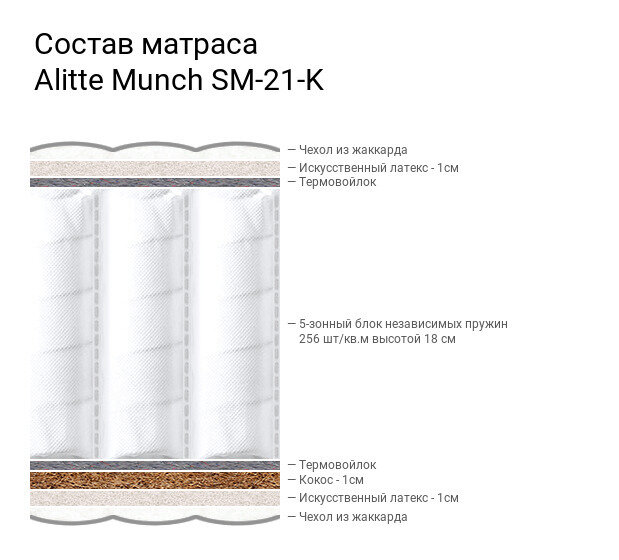 Матрас Alitte Munch SM-21-K, Размер 160х185 см