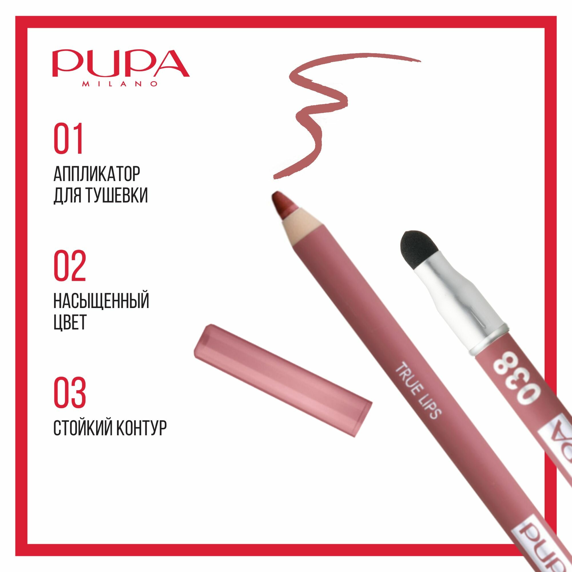 PUPA Карандаш для губ True Lips, 1,2 г, 022