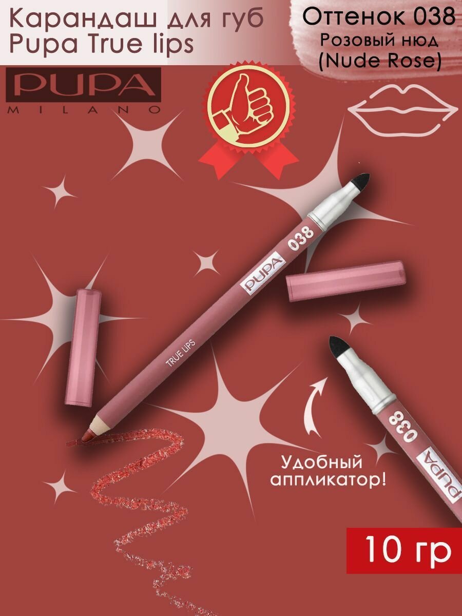 Pupa Карандаш для губ True Lips, тон 038 розовый нюд