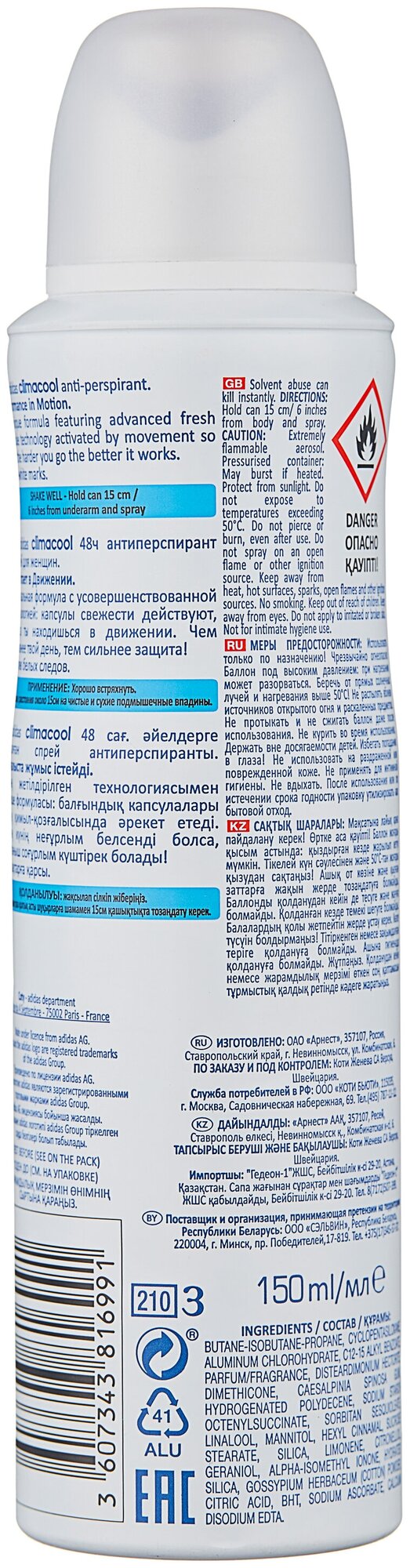 Антиперспирант Adidas Climacool аэрозоль женский 48ч, 150 мл