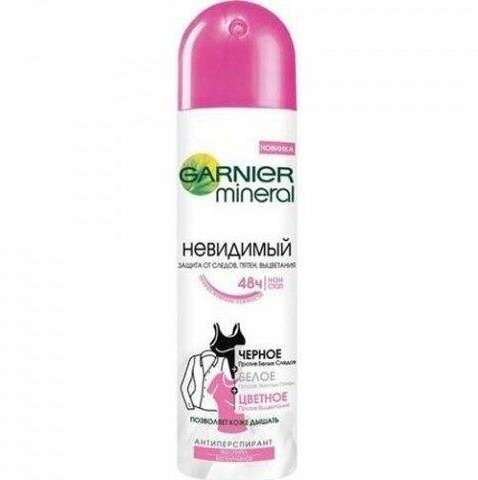 Garnier Mineral Невидимый Дезодорант-антиперспирант спрей "Черное, белое, цветное", 150 мл