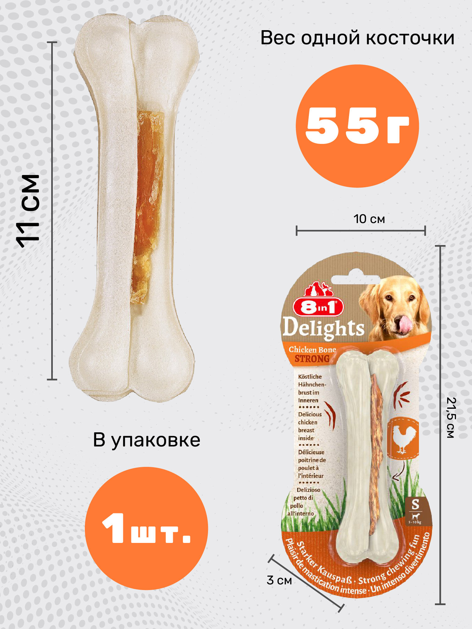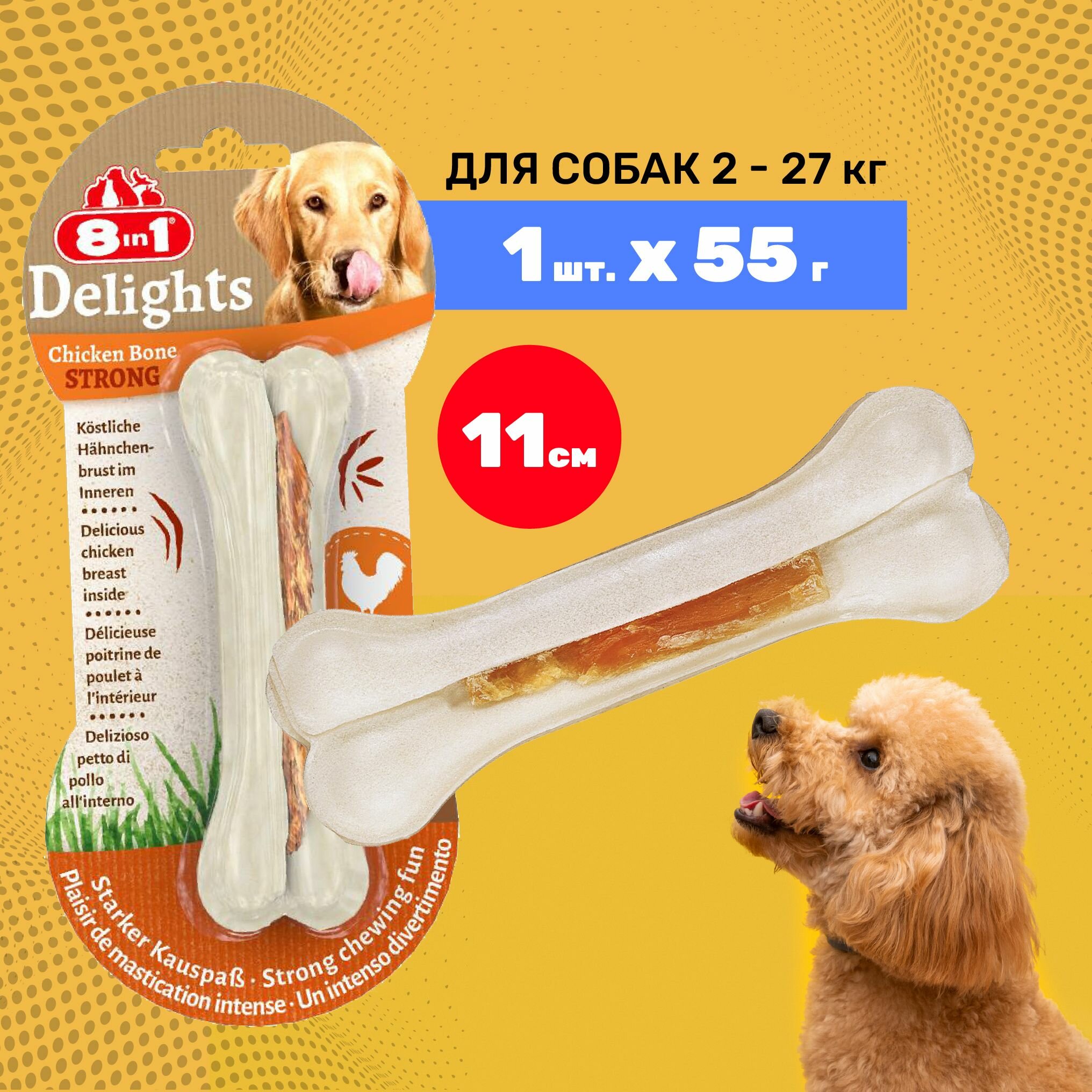 8in1 DELIGHTS Strong S косточка сверхпрочная с куриным мясом для мелких и средних собак 11 см