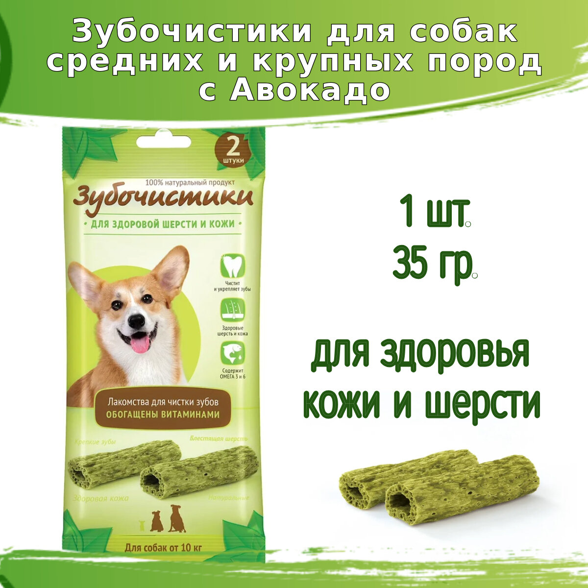 Зубочистики 35 г авокадо лакомство с витаминами для собак средних пород 10-25 кг