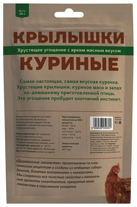 Деревенские лакомства д/собак Крылышки куриные. Классические рецепты, 50 г