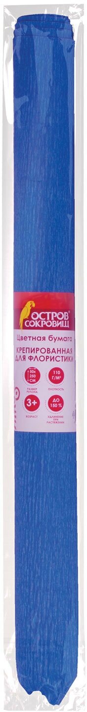 Цветная бумага крепированная, для флористики, 110 г/м, рулон, синяя, 50х250 см, остров сокровищ