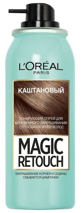 L'Oreal Paris Спрей Magic Retouch для мгновенного закрашивания отросших корней волос, каштановый, 75 мл, 75 г