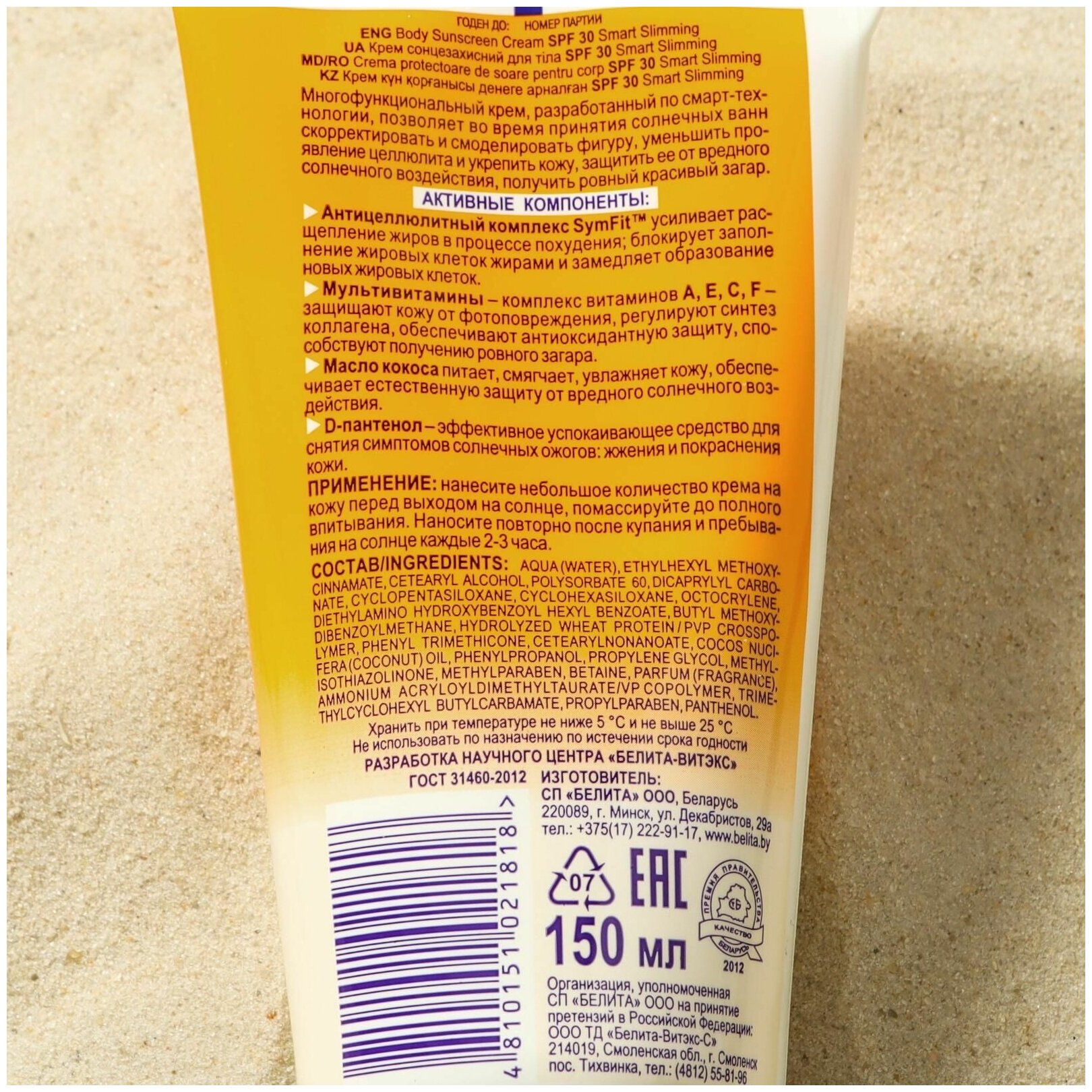 Крем солнцезащитный BELITA Солярис SPF 30 для тела, SMART SLIMMING ,туба 150 мл 6896213