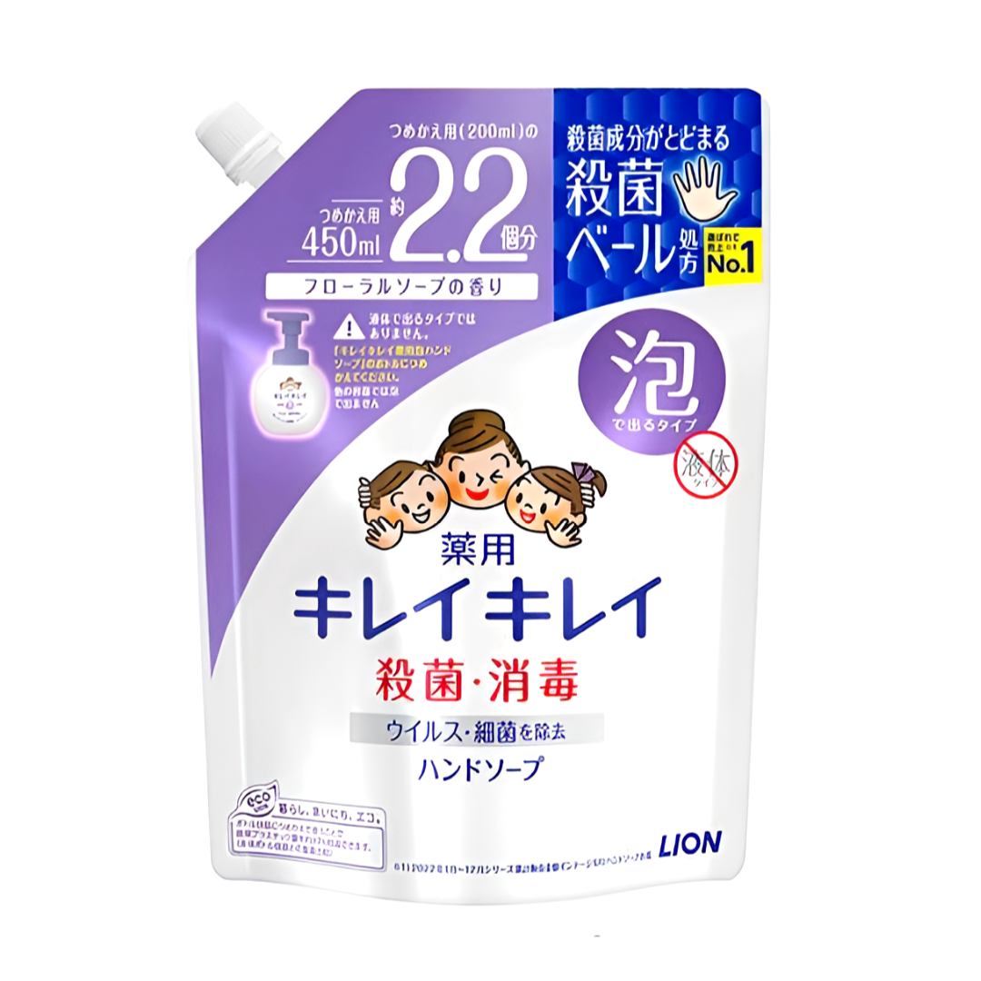 Lion Kirei Kirei Мыло-пенка для рук антибактериальная, цветочный аромат, 450 мл. (мягкая упаковка)