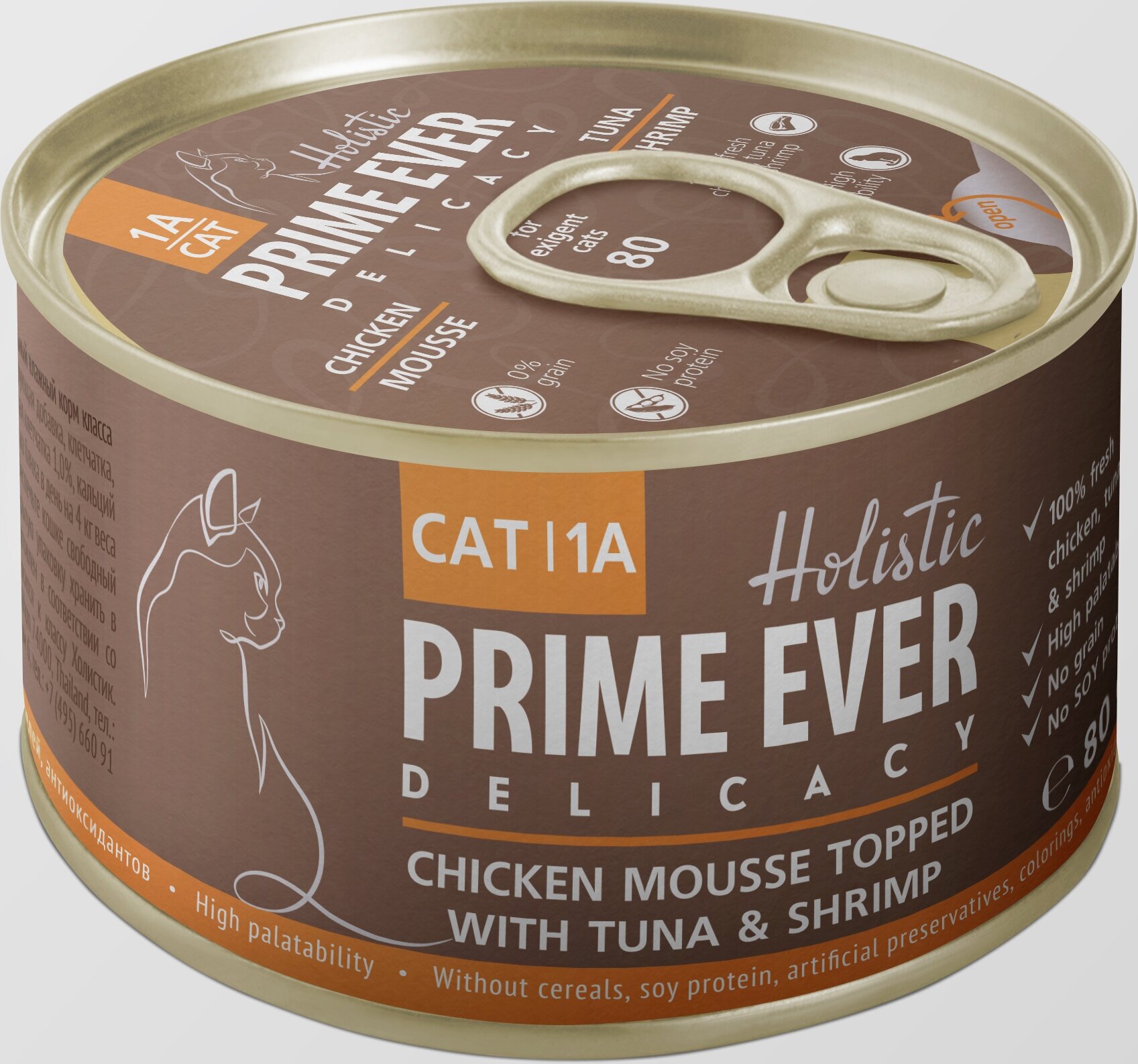 PRIME EVER DELICACY CHICKEN MOUSSE TOPPED WITH TUNA & SHRIMP холистик для кошек и котят мусс с цыпленком, тунцом и креветками (80 гр х 24 шт)