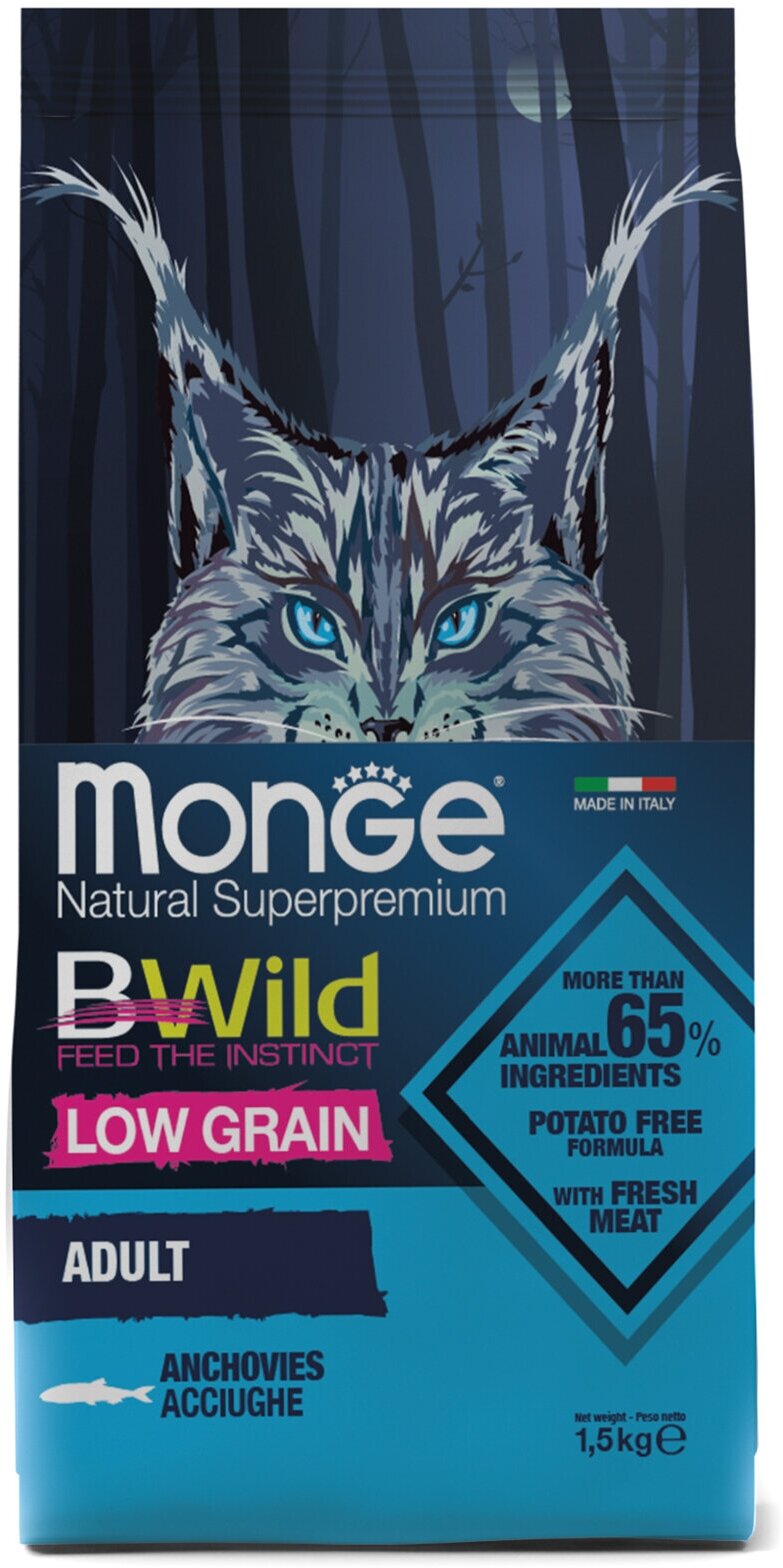 Monge корм для взрослых кошек с анчоусами (bwild cat anchovies)