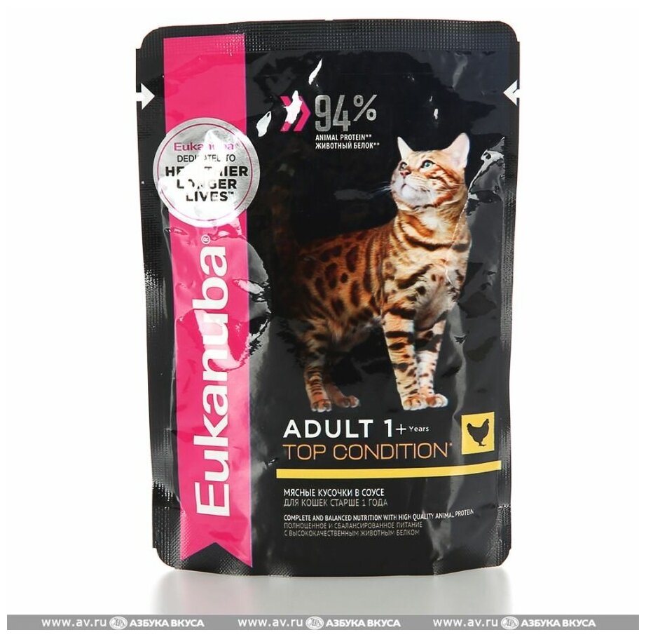 Корм влажный Eukanuba Adult +1 Top Condition для взрослых кошек, с курицей в соусе 24шт.*85 г