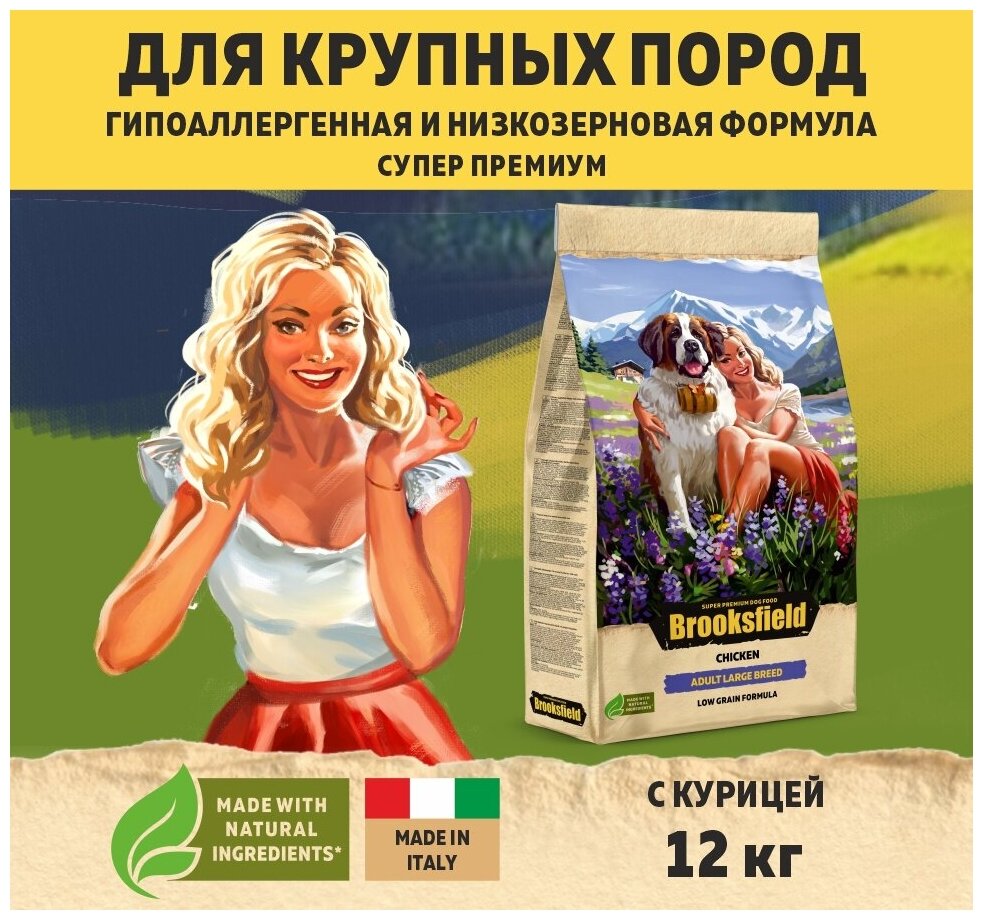 Brooksfield Сухой корм для взрослых собак крупных пород Курица и рис Low Grain Large Breed 5651032, 12,000 кг, 53813