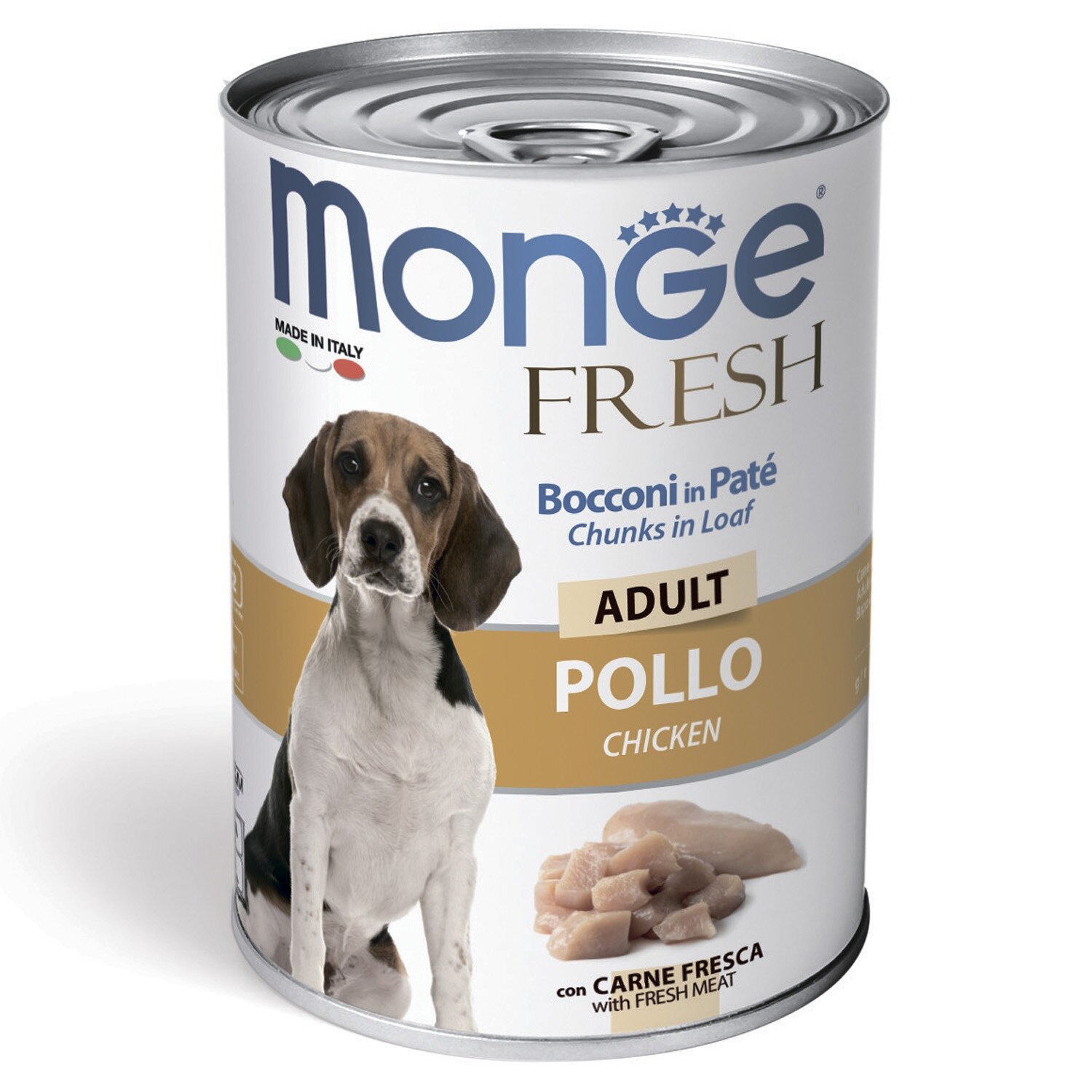 Влажный корм для собак Monge Fresh Chunks in Loaf POLLO Adult, курица, 2 шт. х 400 г