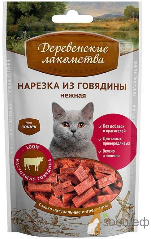 Деревенские лакомства для кошек Нарезка из говядины нежная 45г пл/пак 1/50