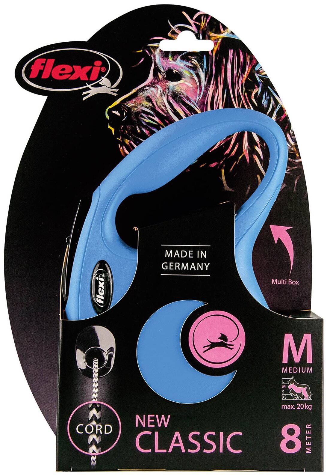 Поводок-рулетка для собак Flexi New Classic (M) 8 м./до 20 кг. (синяя, трос)