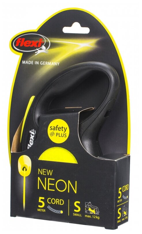 Рулетка-поводок д/собак Flexi New Neon S 5м до 12кг трос черный/желтый 1/1