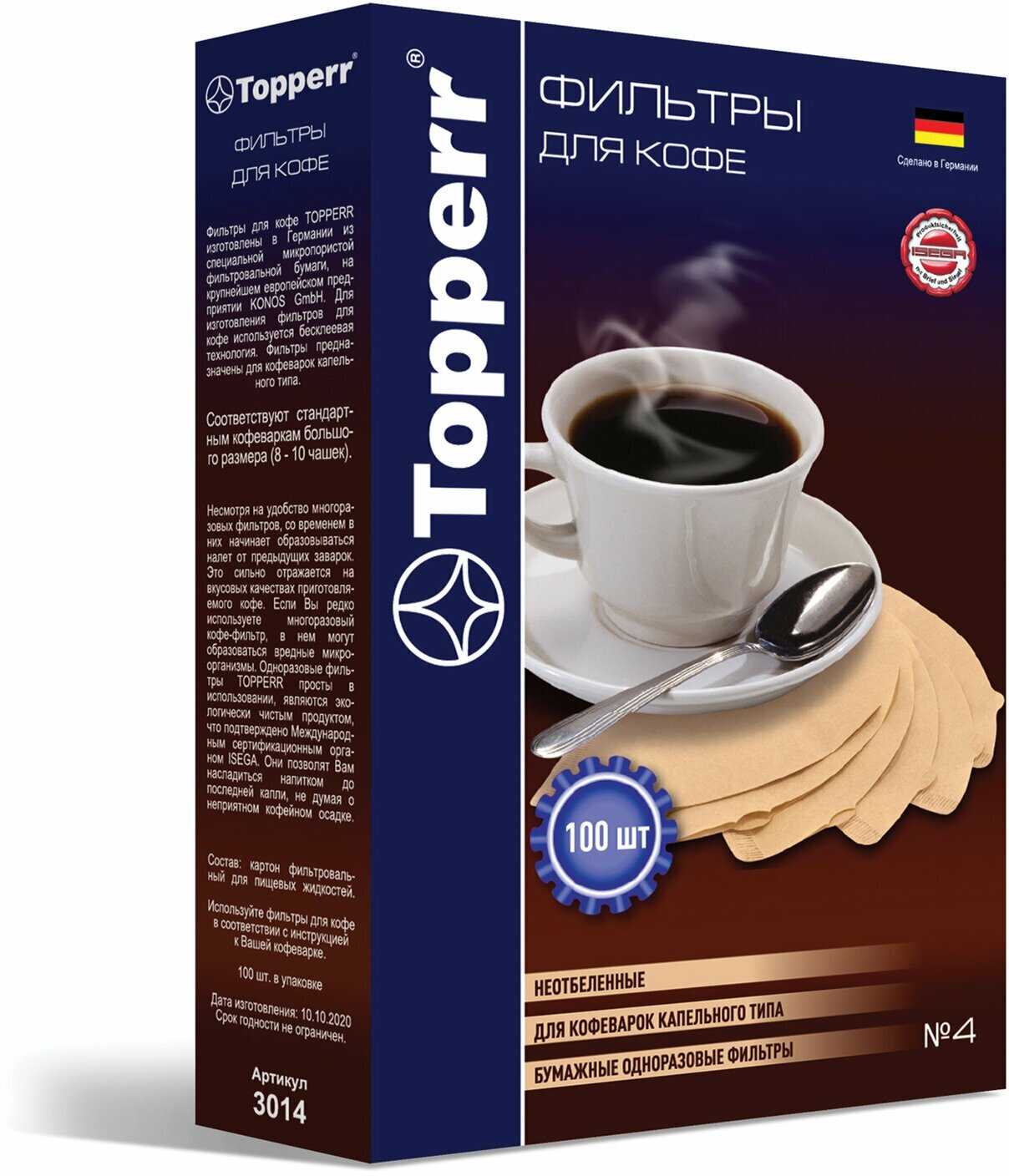 Фильтр бумажный для кофеварок Topperr №4 100 шт, неотбеленный