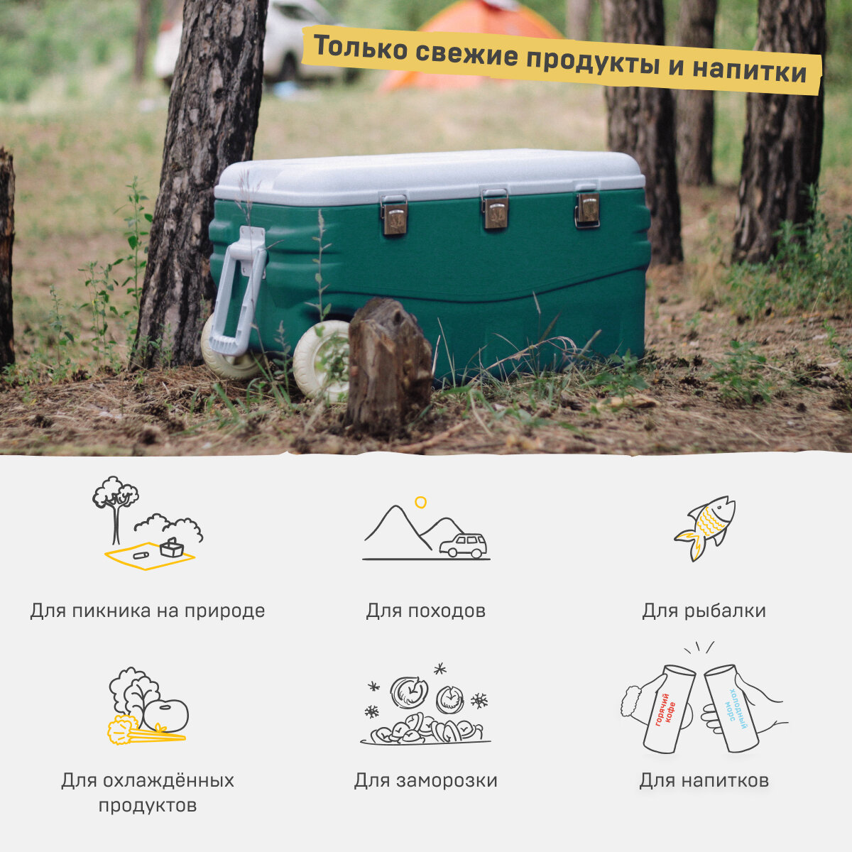 | Плюсы: | Очень вместительный изотермический контейнер, отличный выбор для рыбаков. Приобретался для транспортировки рыбы из Астрахани в Санкт-Петербург. За двое суток рыба не испортилась, а если хотя бы раз в сутки менять аккумуляторы холода, то рыба доехала бы еще замороженной. Транспортировочные колёса - очень актуальное решение, если контейнер забить под завязку, намного удобнее транспортировать. |