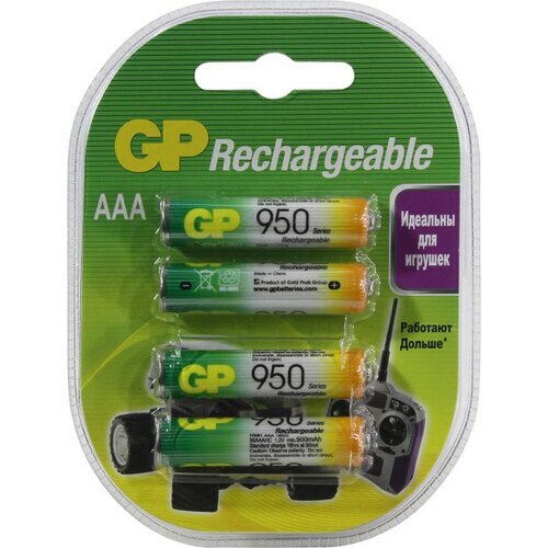 Аккумулятор Ni-Mh 950 мА·ч 1.2 В GP Rechargeable 950 Series AAA, в упаковке: 4 шт.