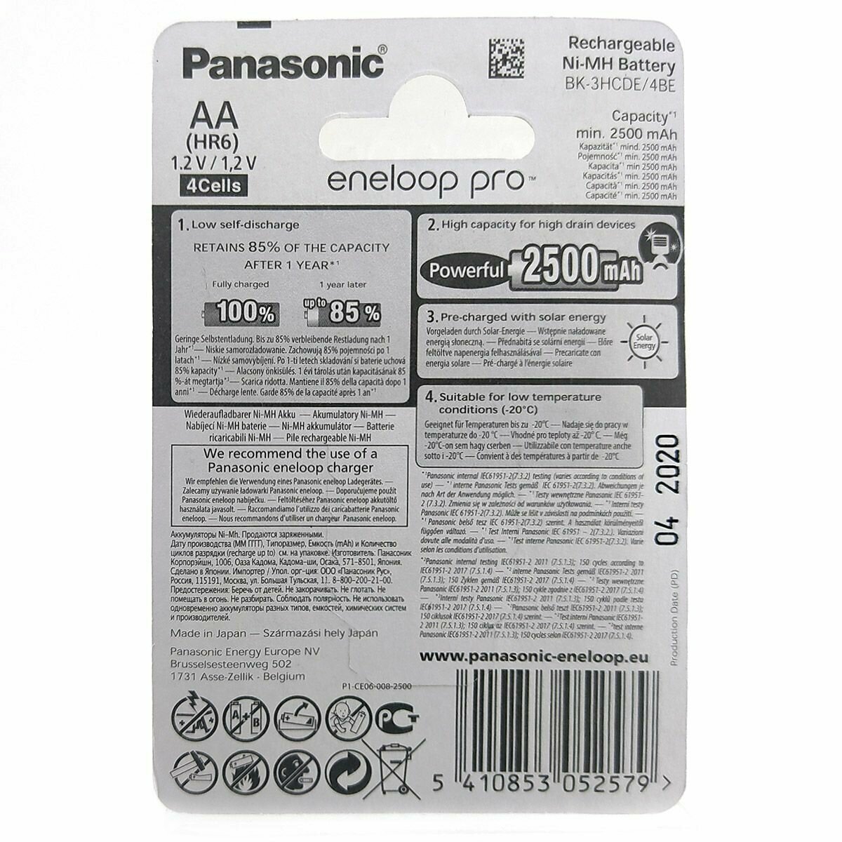 Аккумулятор Panasonic eneloop pro BK-3HCDE/4BE 2500mAh AA BL4, упаковка 4 шт.