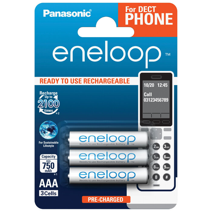Купить Аккумулятор Ni-Mh 750 мА·ч 1.2 В Panasonic eneloop DECT AAA, в упаковке: 3 шт.