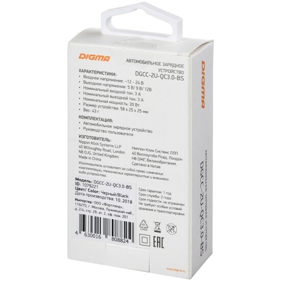 Зарядное устройство Digma Dgcc-2u-qc3.0-bs