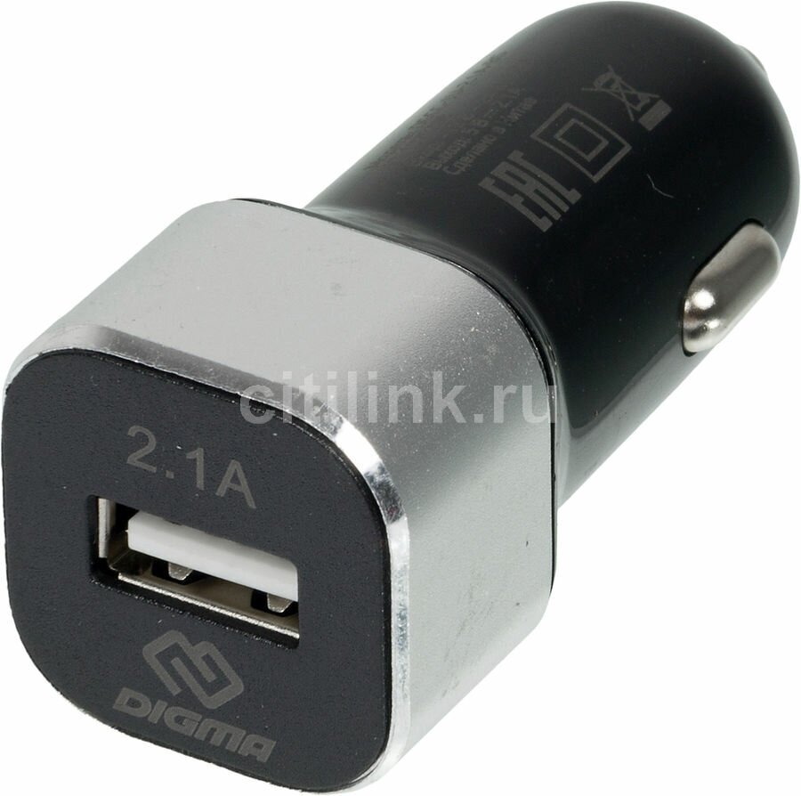 Автомобильное зарядное устройство DIGMA DGCC-1U-2.1A-BS, USB, 2.1A, черный