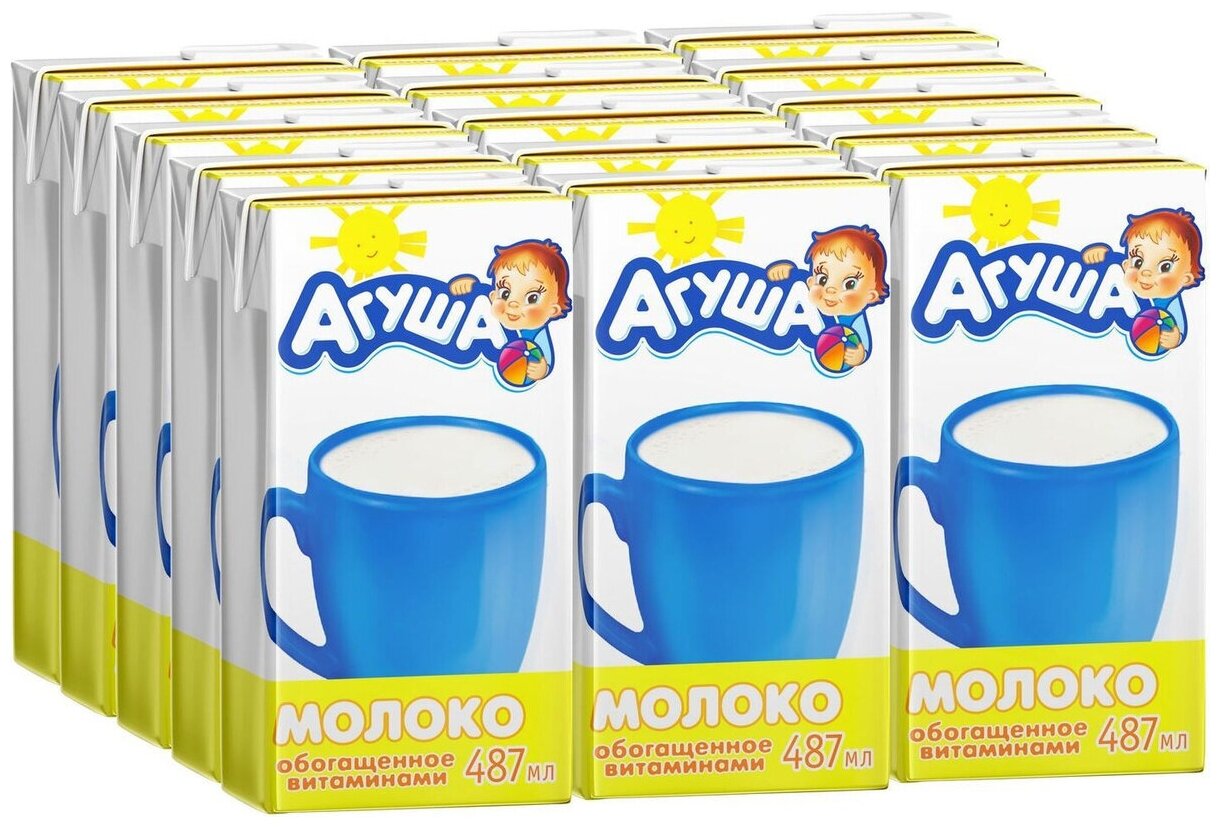 Купить Молоко Агуша стерилизованное, обогащенное витаминами, с 3 лет, 3.2%, 500 г, 15 шт.