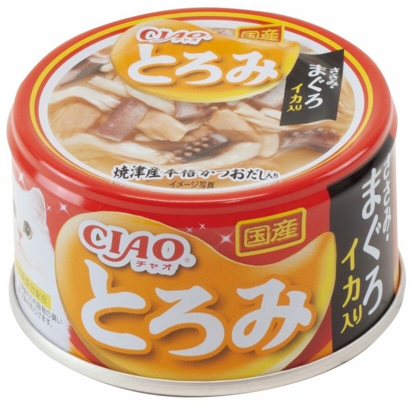 Inaba Ciao Toromi консервы для взрослых кошек с куриным филе, тунцом магуро и кальмаром, в бульоне - 80 г х 24 шт