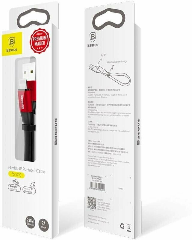 Кабель USB BASEUS Nimble Portable, USB - Lightning, 2А, 23 см, черный+красный
