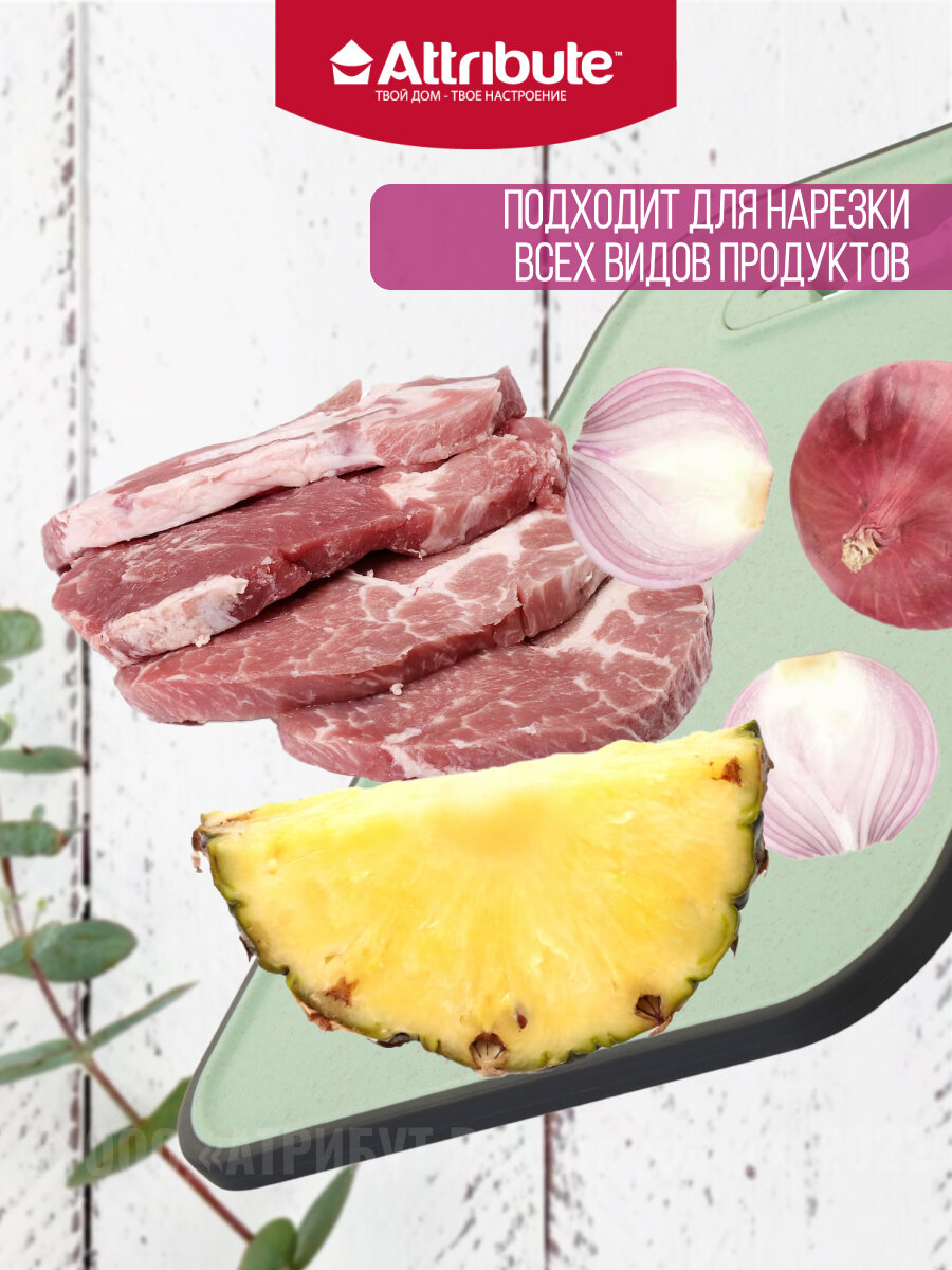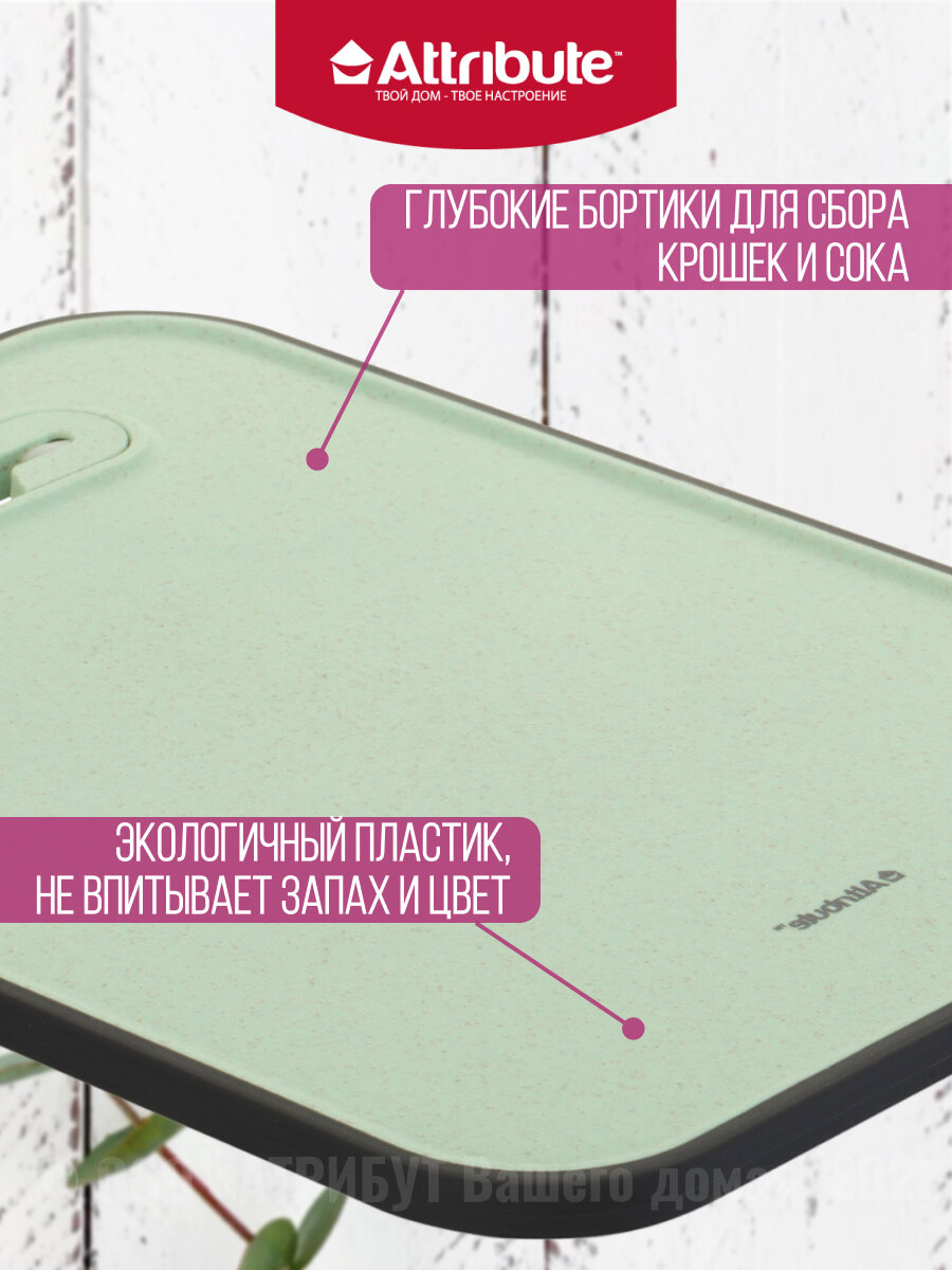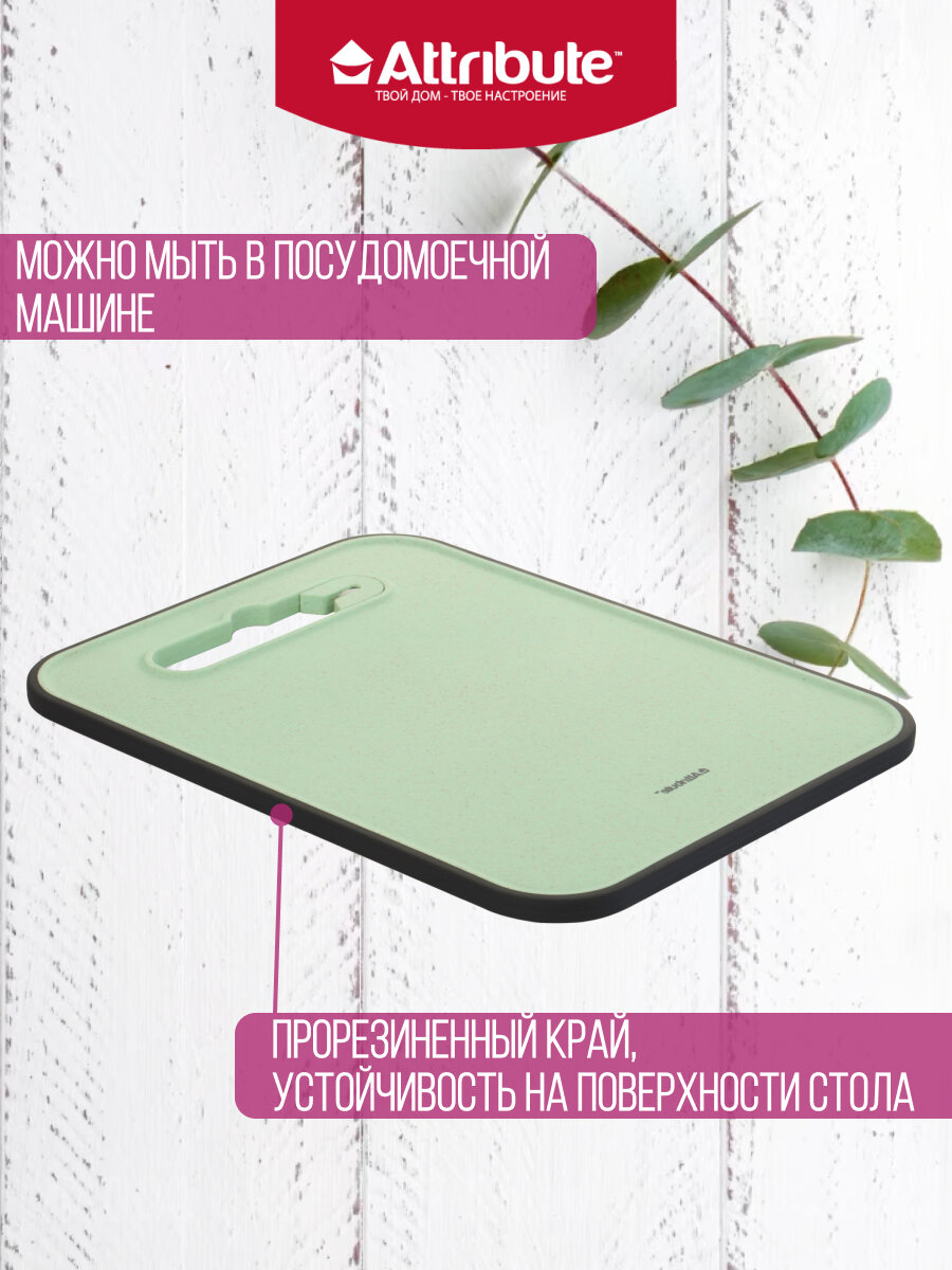 Доска разделочная FIBER 28x37см с ножеточкой, mint ATTRIBUTE CUT.BOAR
