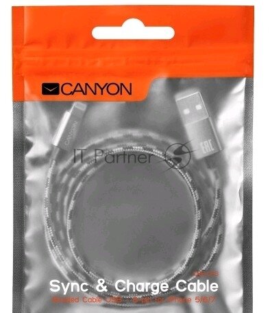 Кабель плетеный Canyon для iPad / iPhone 8-pin Lightning - USB 20 CFI-3 1м черный CNE-CFI3B