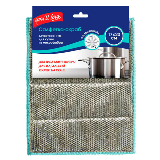 Купить Home Queen You`ll love Салфетка-скраб двухсторонняя из микрофибры для кухни 17*20см