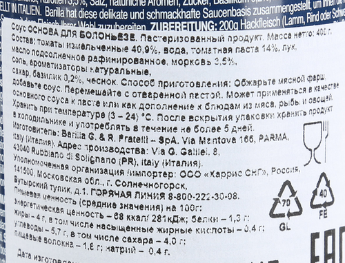 Ниже Вы можете прочитать отзывы на Основа BARILLA для Болоньезе, 400г, ознакомится с подробными характеристиками, посмотреть интересные обзоры и фотографии на Основа BARILLA для Болоньезе, 400г.
