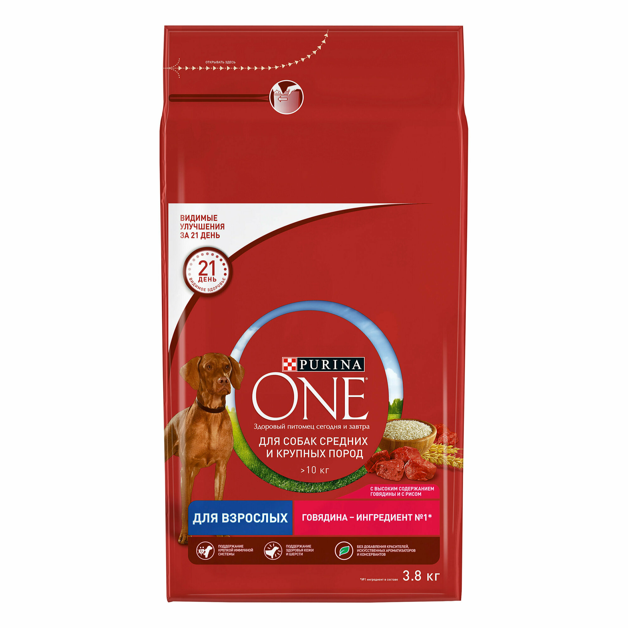 PURINA ONE 3,8 кг сухой корм для взрослых собак средних и крупных пород, с высоким содержанием говядины и с рисом